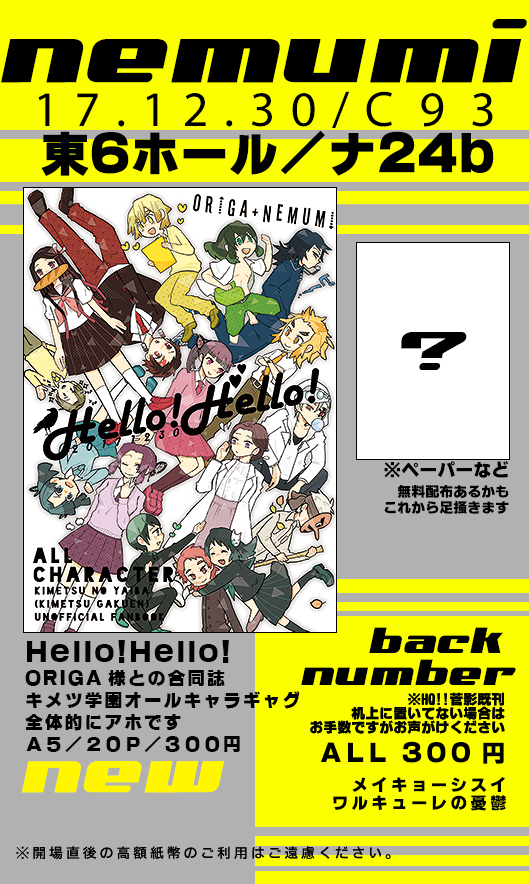 では、冬コミ2日目はよろしくお願いいたします。かなり緊張しておりますが、とても楽しみにしております。お話していただけますと嬉しいです。
